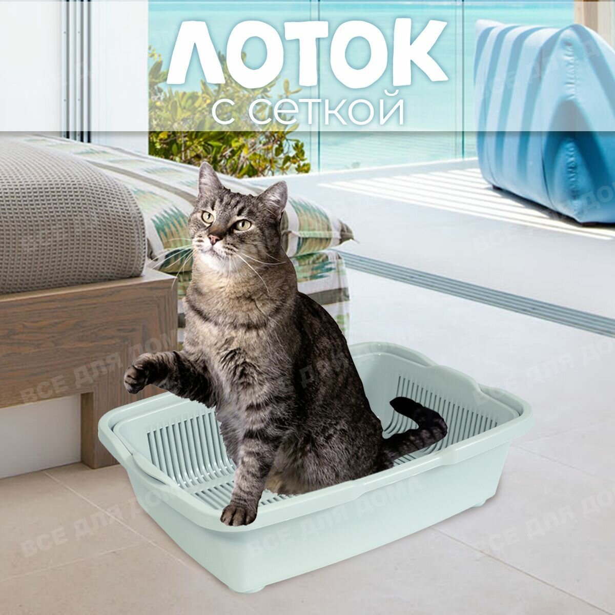 Лоток Туалет для кошек большой с сеткой , ментоловый, 36х49х12,5 см