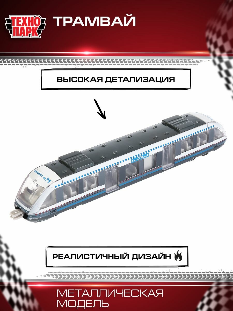 Машинка детская Трамвай 16.5 см, Технопарк, черно-белая, металлическая