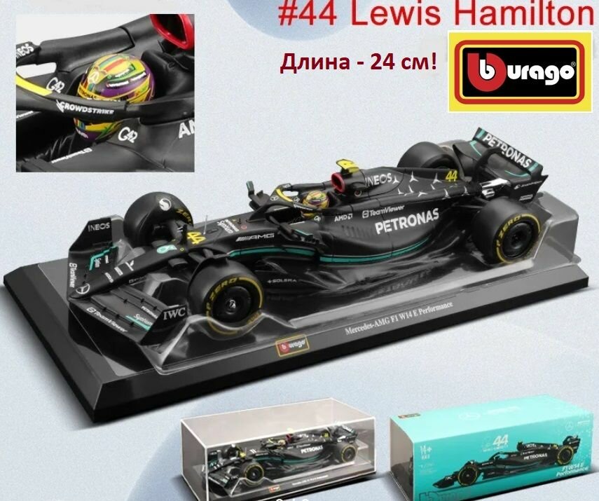 Купить Металлическая коллекционная модель "Bburago" болида "Мерседес" Льюис Хэмилтон. (Lewis Hamilton "Mercedes" W14 №44) Формула-1 сезон 2023. Масштаб 1:24. Длина -24 см