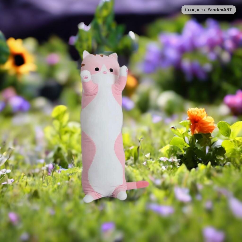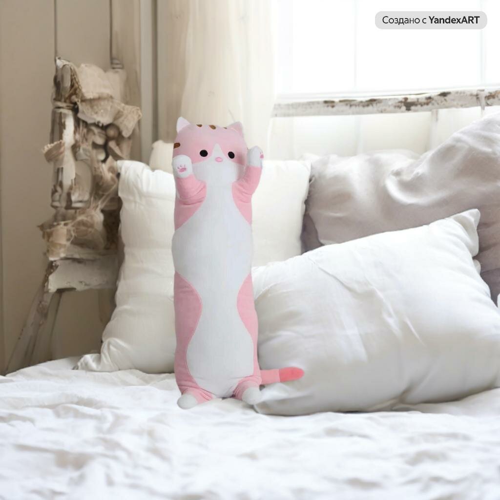 Мягкая игрушка-подушка Кот батон розовый 50 см интересное: