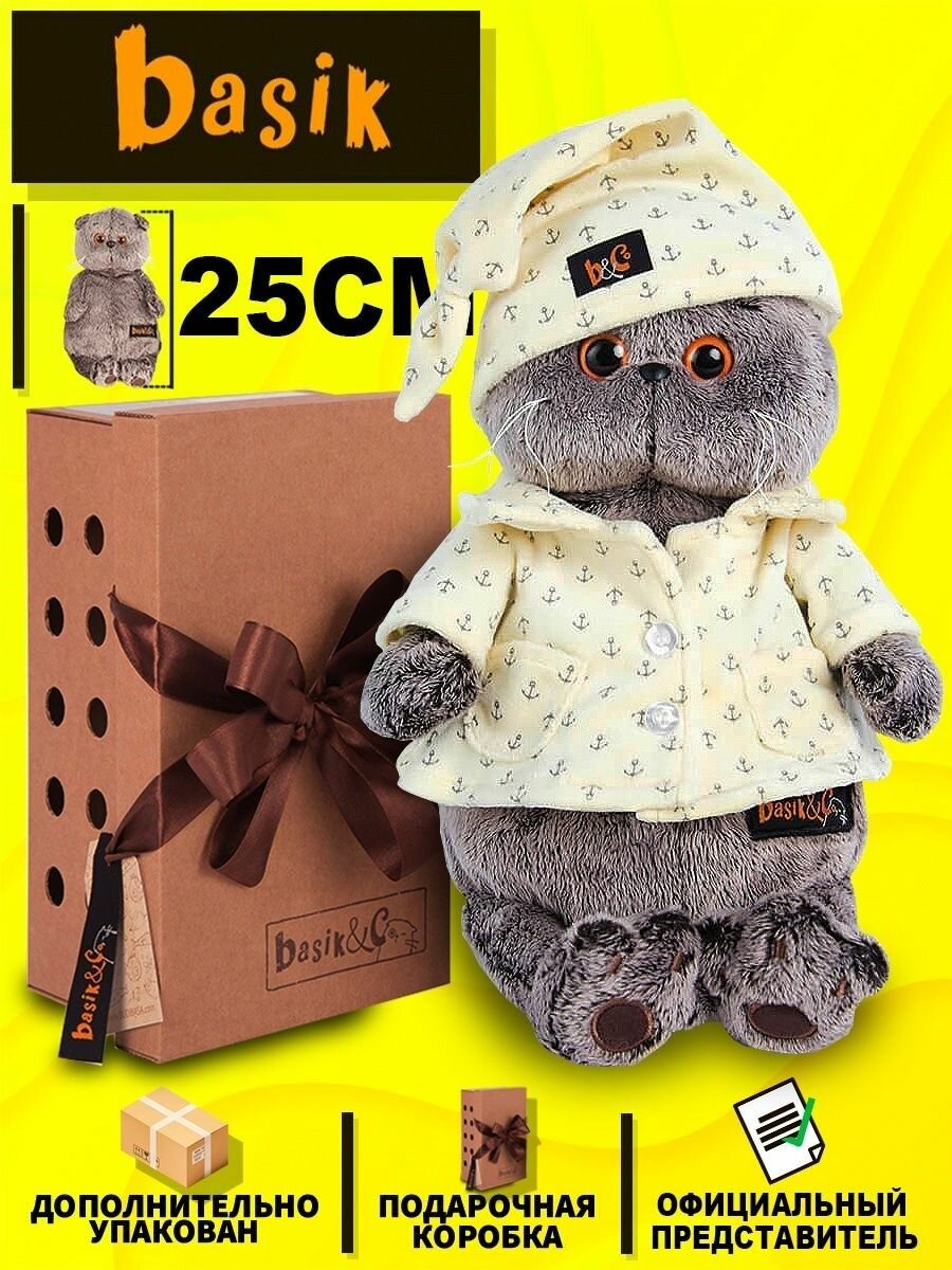 Мягкая игрушка Буди Баса кот Басик в пижаме 25 см / Budi Basa