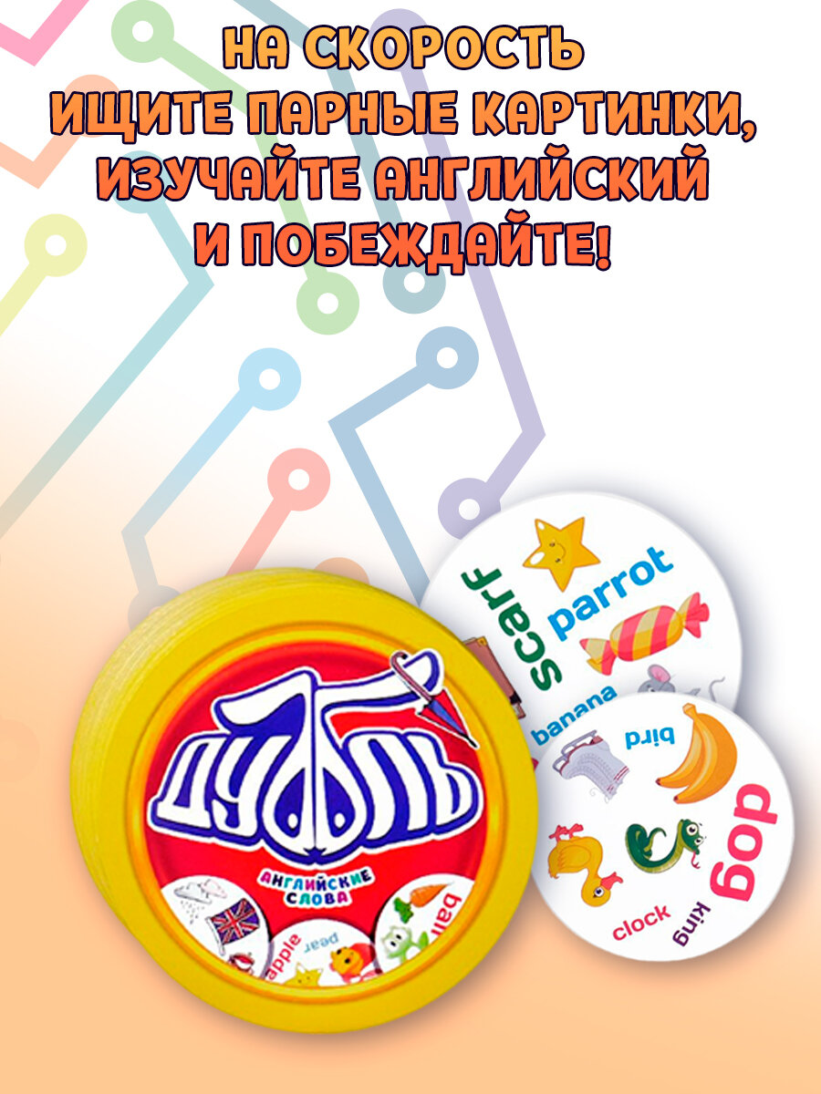 Настольная игра на реакцию и внимание «Дуббль. Английские слова», 55 карт, 5+ интересное: