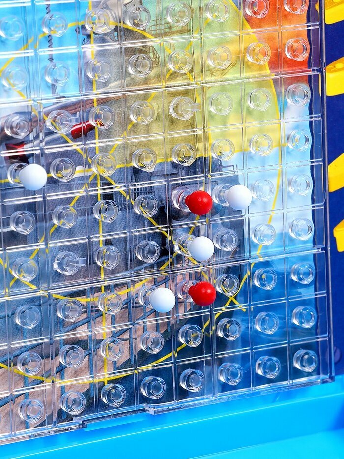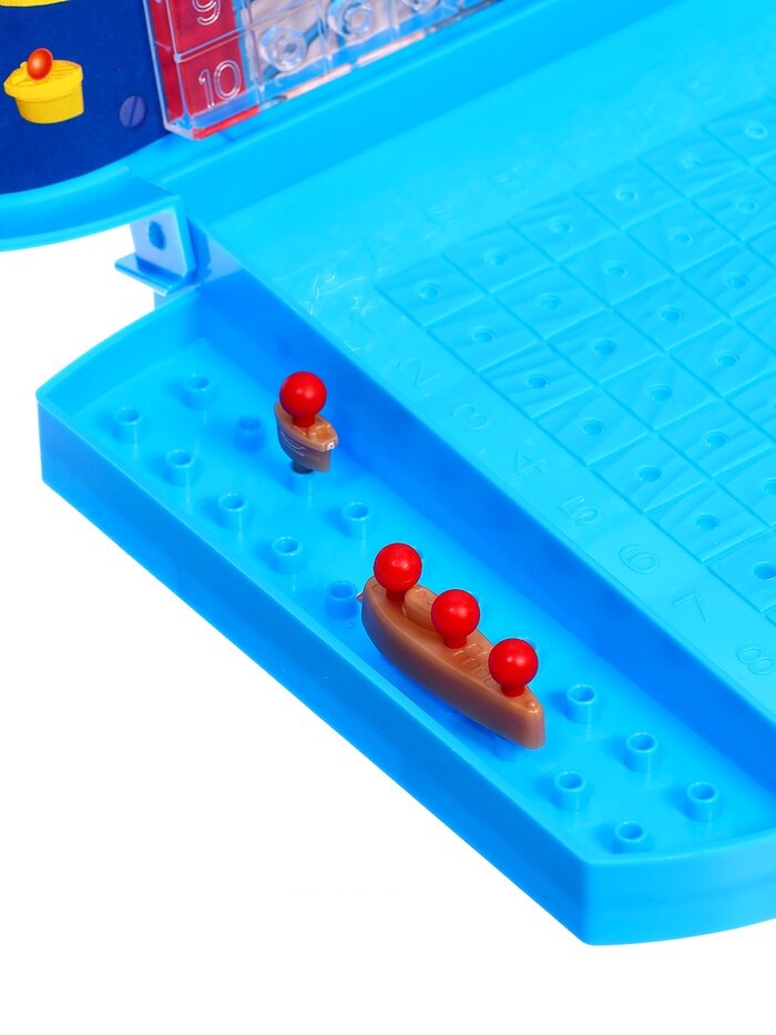 | Комплектация | 2 игровых поля, 2 комплекта по 10 единиц техники (авианосец - 1 шт., крейсер - 1 шт., подводная лодка - 1 шт., эсминец - 3 шт., торпедный катер - 4 шт.) и 2 комплекта фишек для обозначения выстрелов (40 красных - "попадание", 120 белых - "промах") |
