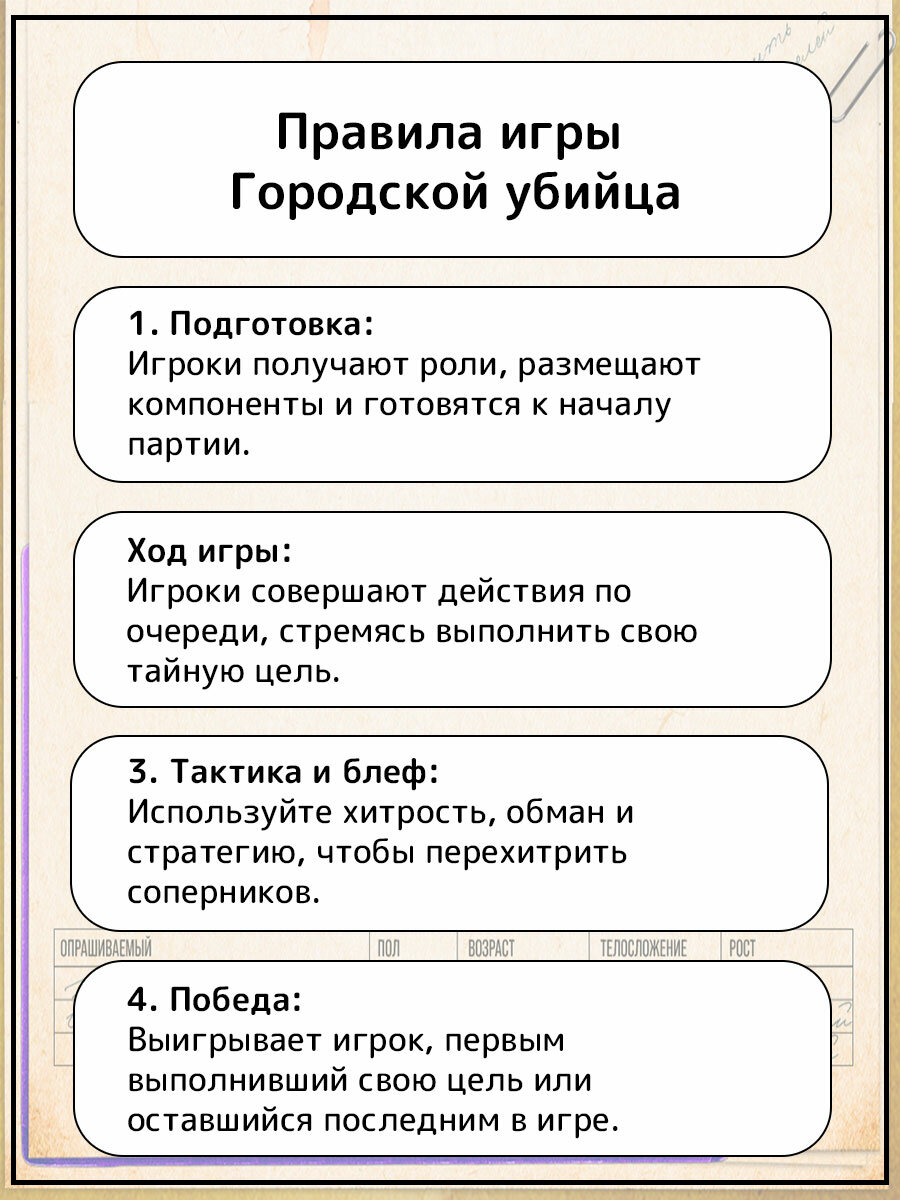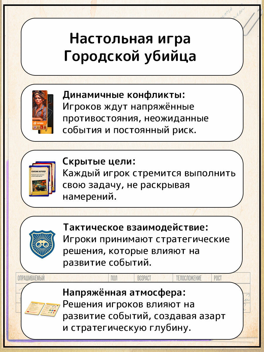 Ниже Вы можете прочитать отзывы на Настольная детективная игра Городской убийца, ознакомится с подробными характеристиками, посмотреть интересные обзоры и фотографии на Настольная детективная игра Городской убийца.