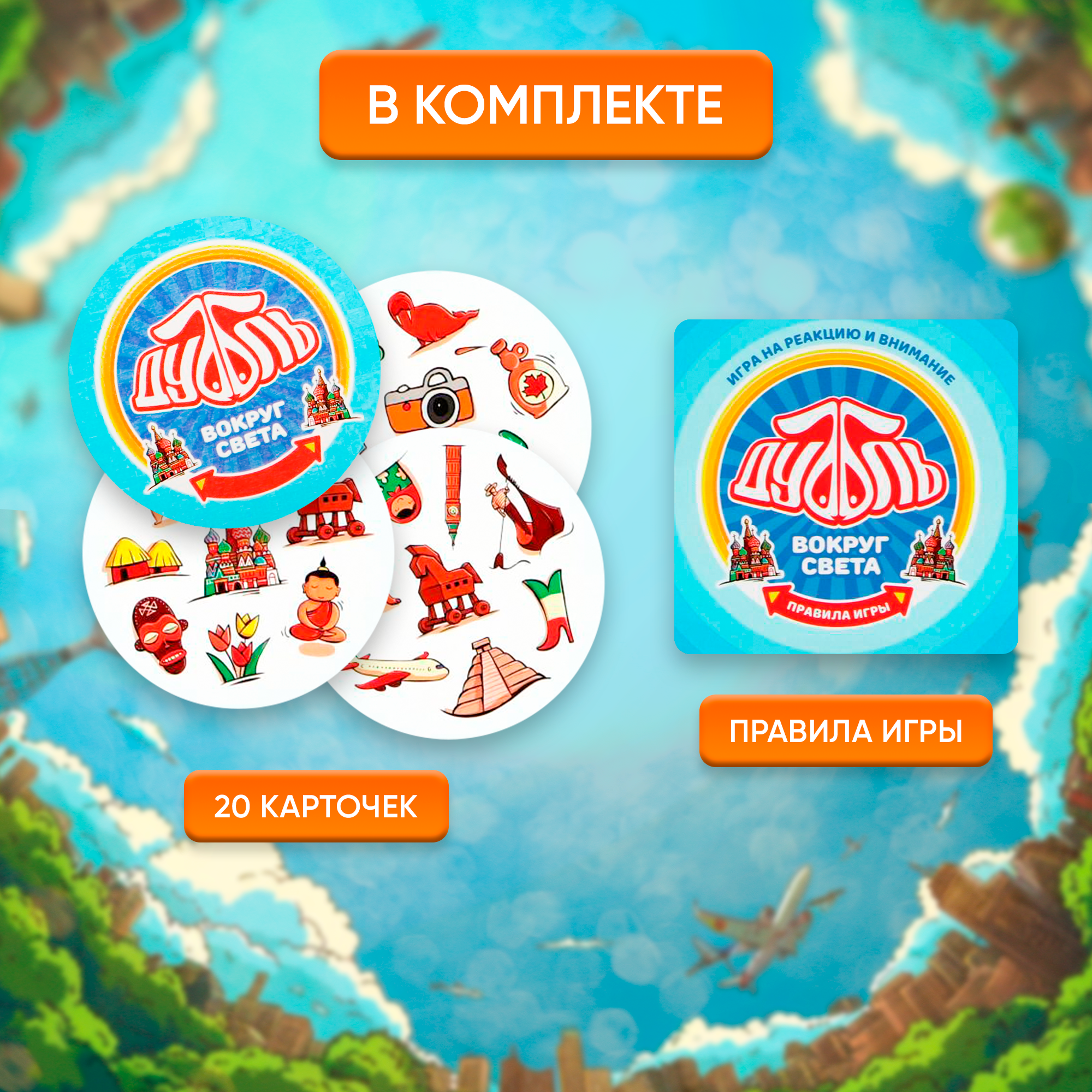 Игра на внимание "Дуббль Вокруг света", 20 карт, для детей и малышей от 5 лет интересное: