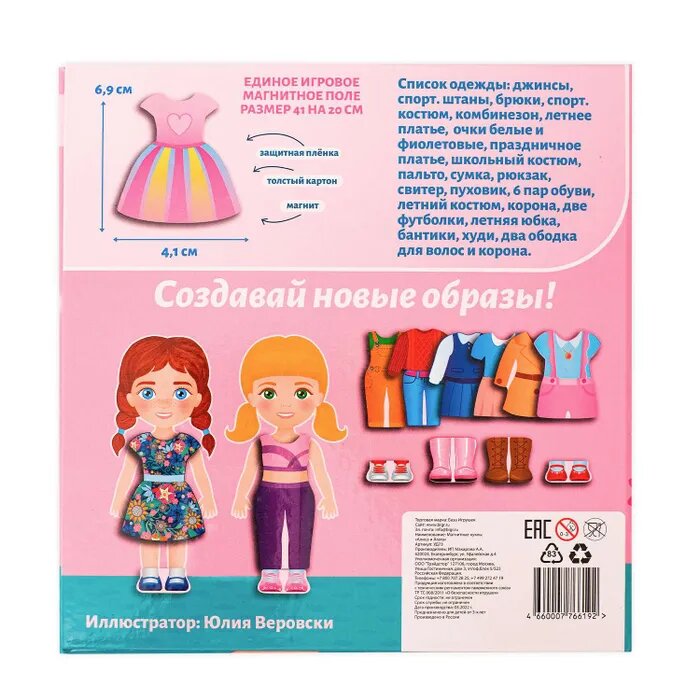 Развивающая магнитная игра Бигр Кукла Агата и Алиса одевашка УД73