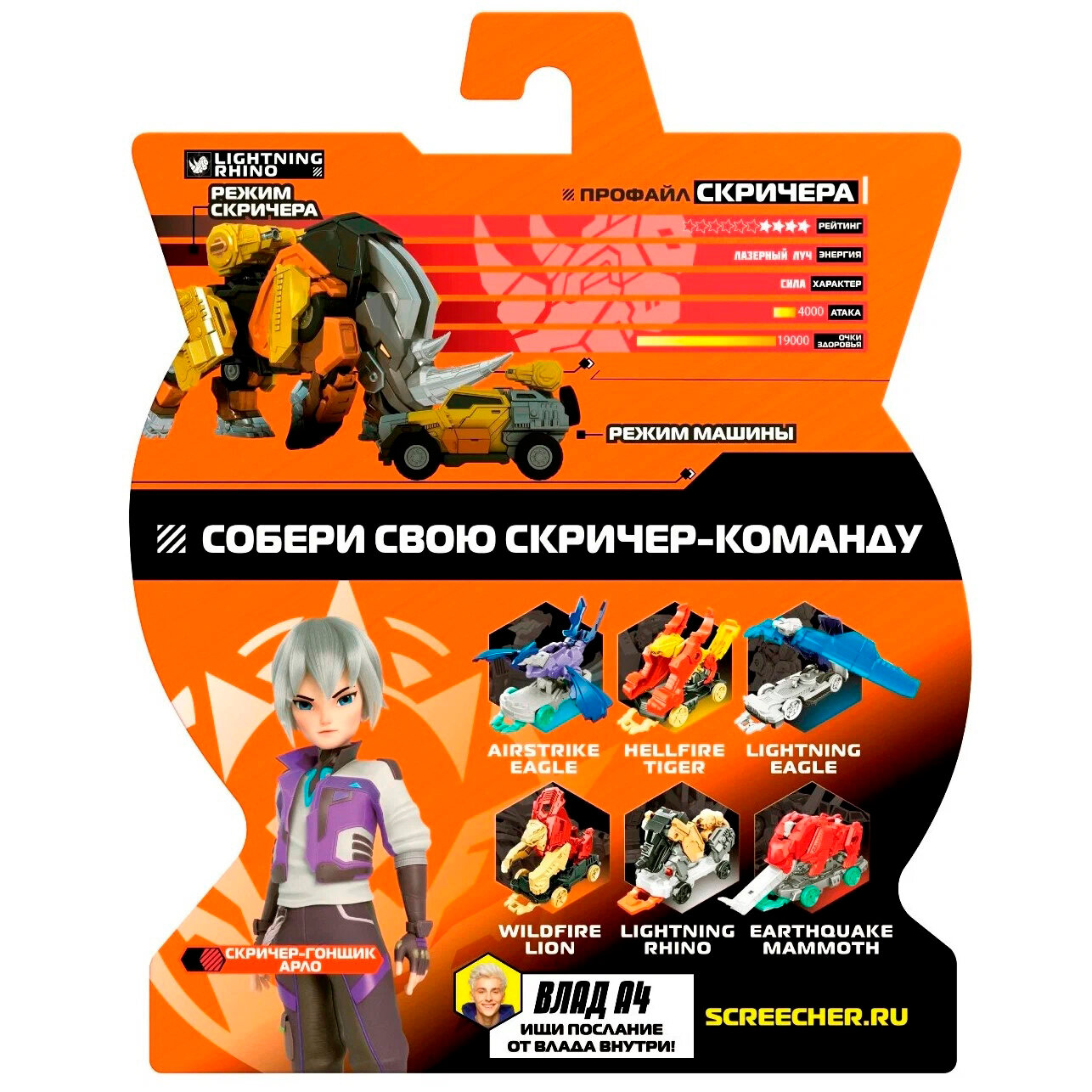 Купить Дикие Скричеры/ Влад А4 Машинка - трансформер Лайтнинг Райно L720 .ТМ Screechers Wild