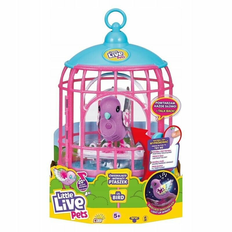 Купить Интерактивная поющая птичка в клетке - домике, со светящимися крылышками Радужный Свет Little Live Pets 26404