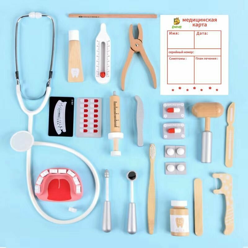 Детский деревянный игровой набор доктора в сумке, сюжетно-ролевые игры интересное: