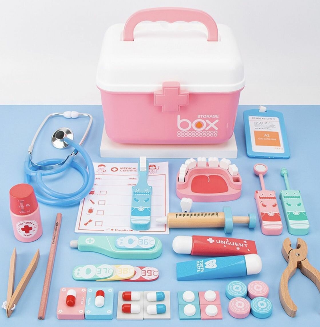 Деревянный игровой набор "Доктор" в чемоданчике для детей . сюжетно-ролевые игрушки интересное: