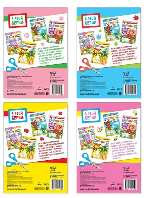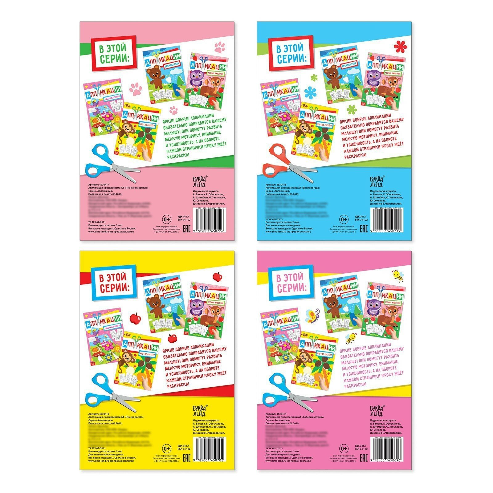 Аппликации с раскрасками набор А4 «Любимые картинки», 4 шт. по 20 стр. интересное:
