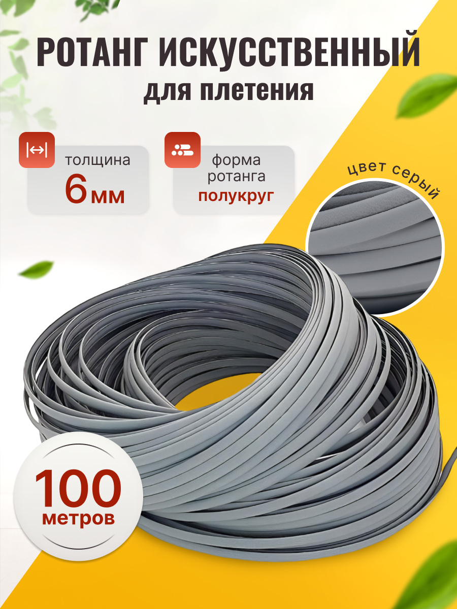 Искусственный ротанг для плетения декоративной мебели, полиротанг серого цвета 100 м интересное: