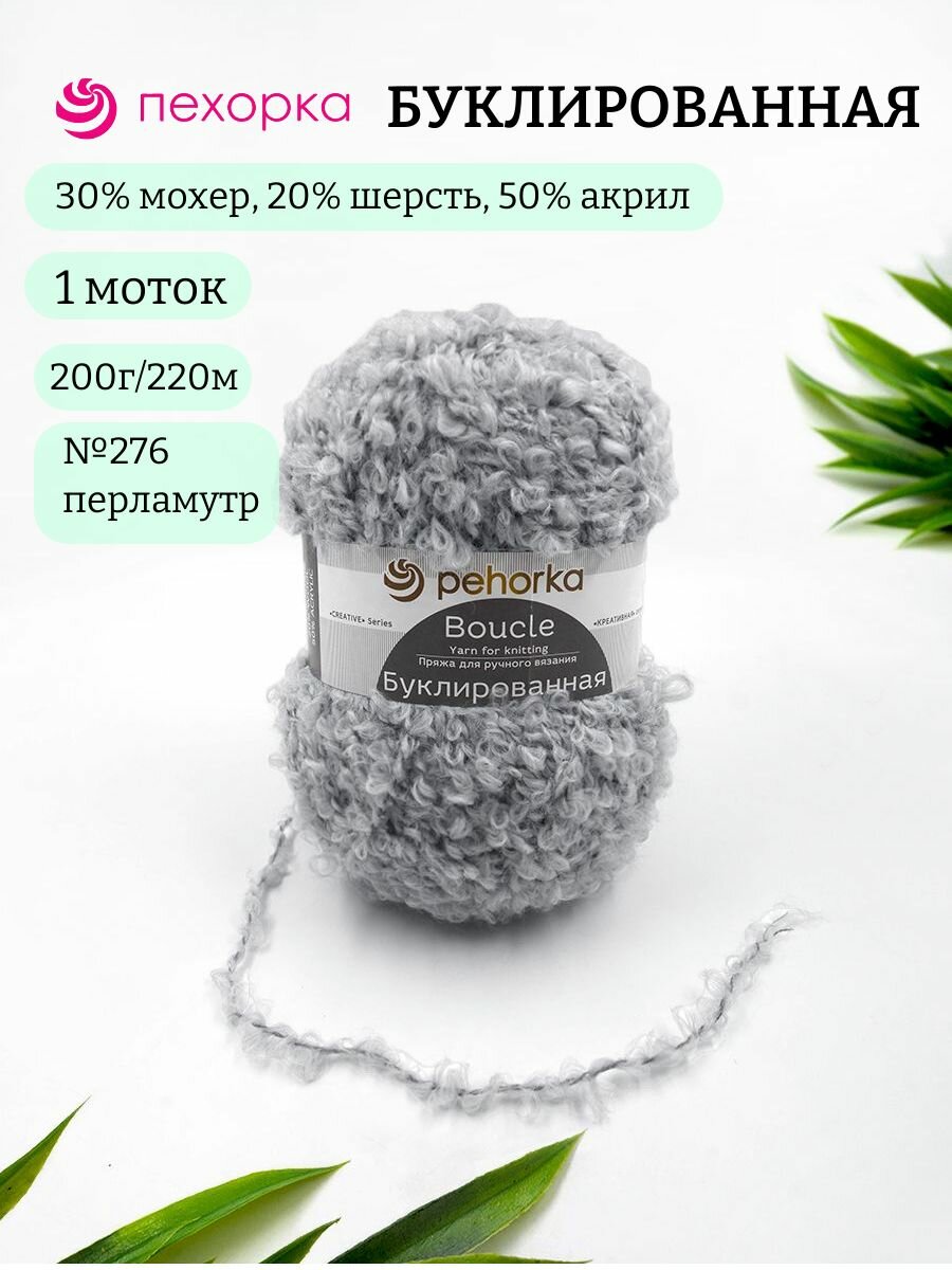 Пряжа Пехорка Буклированная перламутр (276), 30%мохер/20%шерсть/50%акрил, 220м, 200г, 1шт