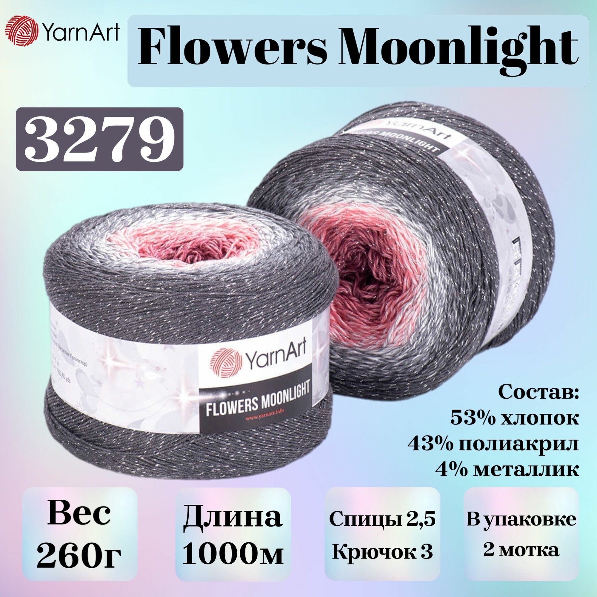 Купить Пряжа YarnArt Flowers Moonlight серый-белый-коралл-т.роза (3279), 53%хлопок/43%акрил/4%металлик, 1000м, 260г, 1шт