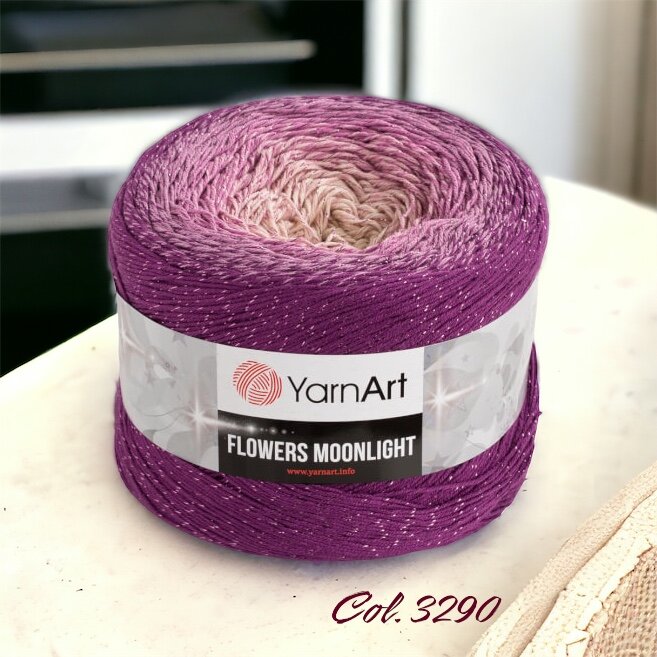 Купить Пряжа YarnArt Flowers Moonlight лиловый-розовосиреневый-молочный (3290), 53%хлопок/43%акрил/4%металлик, 1000м, 260г, 1шт