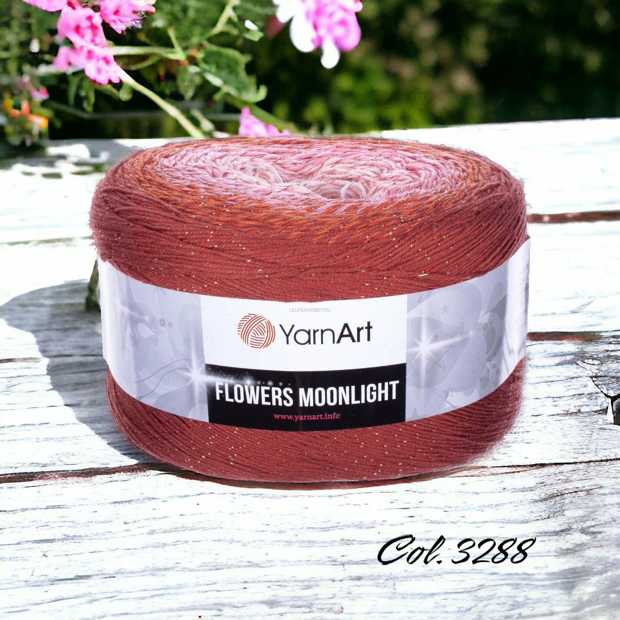 Купить Пряжа YarnArt Flowers Moonlight терракот-розовый-белый (3288), 53%хлопок/43%акрил/4%металлик, 1000м, 260г, 1шт