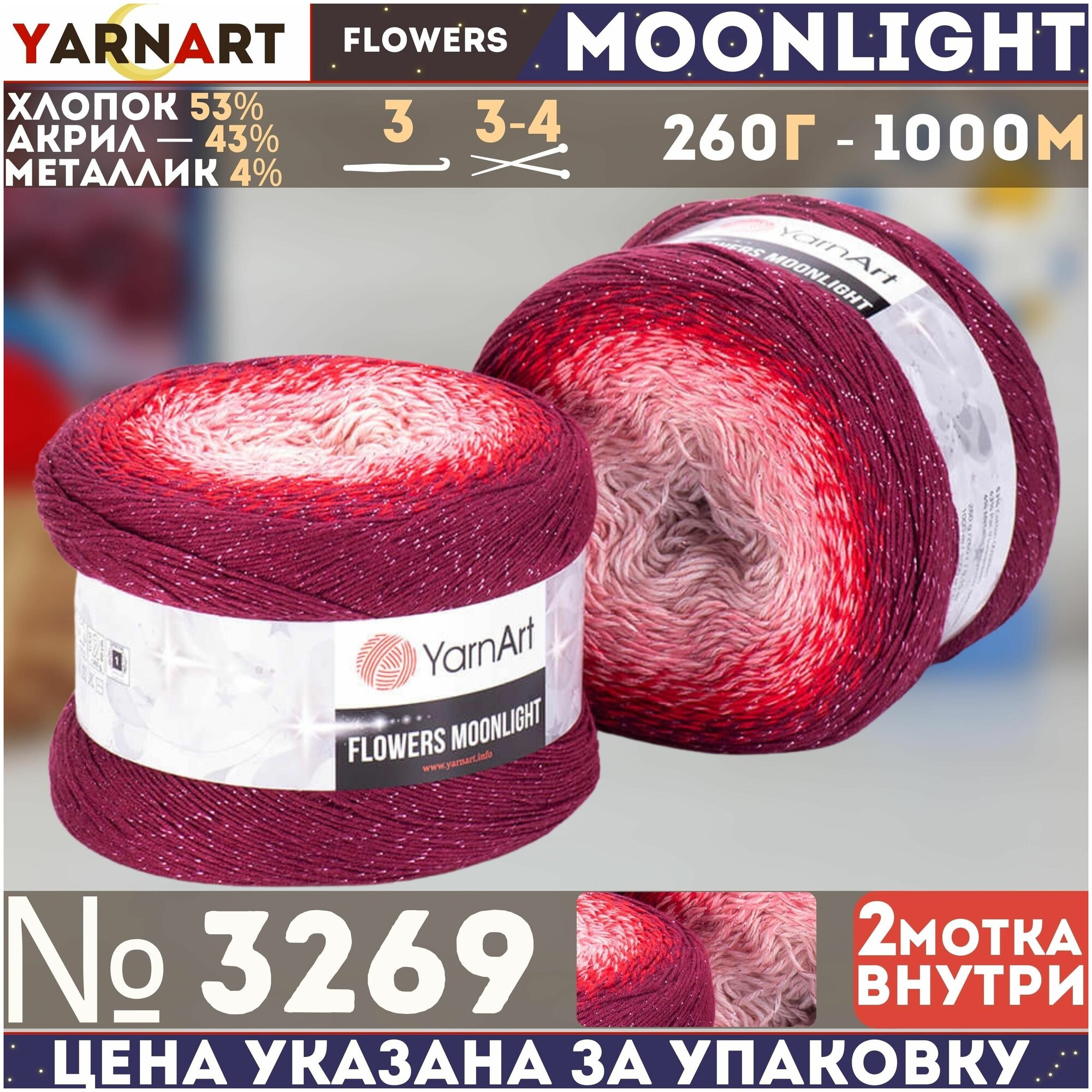Пряжа YarnArt Flowers Moonlight бордовый-красный-св.розовый (3269), 53%хлопок/43%акрил/4%металлик, 1000м, 260г, 2шт