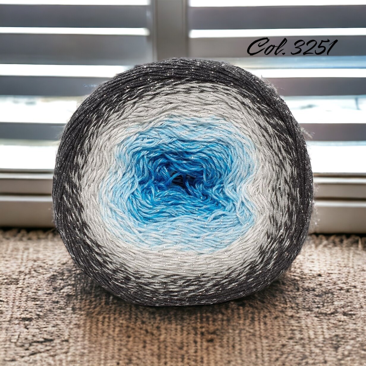 Пряжа YarnArt Flowers Moonlight темно серый-серый-св.голубой-бирюза (3251), 53%хлопок/43%акрил/4%металлик, 1000м, 260г, 5шт