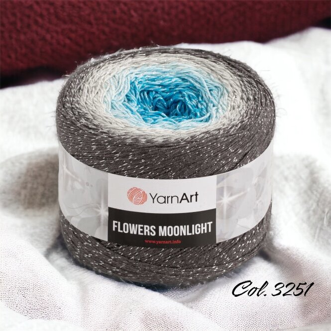 Пряжа YarnArt Flowers Moonlight темно серый-серый-св.голубой-бирюза (3251), 53%хлопок/43%акрил/4%металлик, 1000м, 260г, 3шт