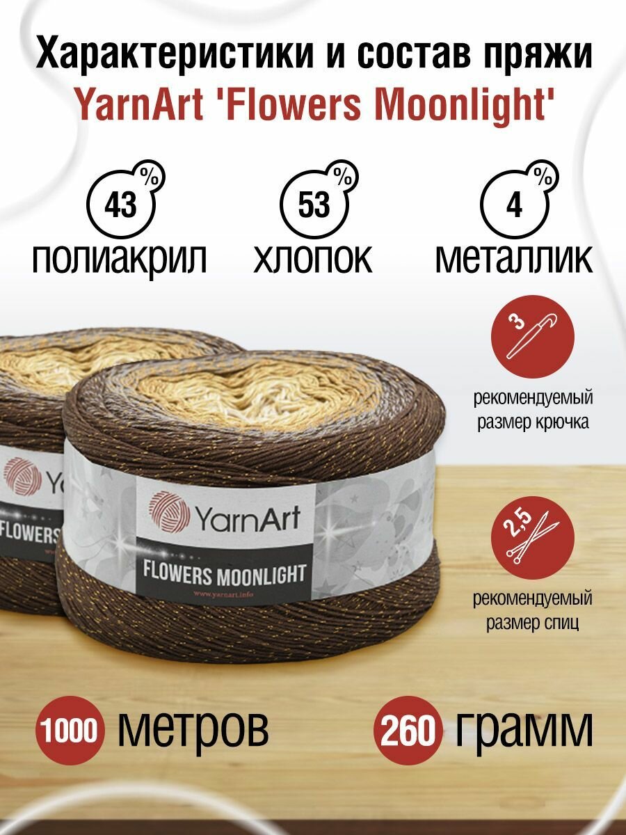 Пряжа YarnArt Flowers Moonlight коричневый-бежевый-медовый (3284), 53%хлопок/43%акрил/4%металлик, 1000м, 260г, 2шт