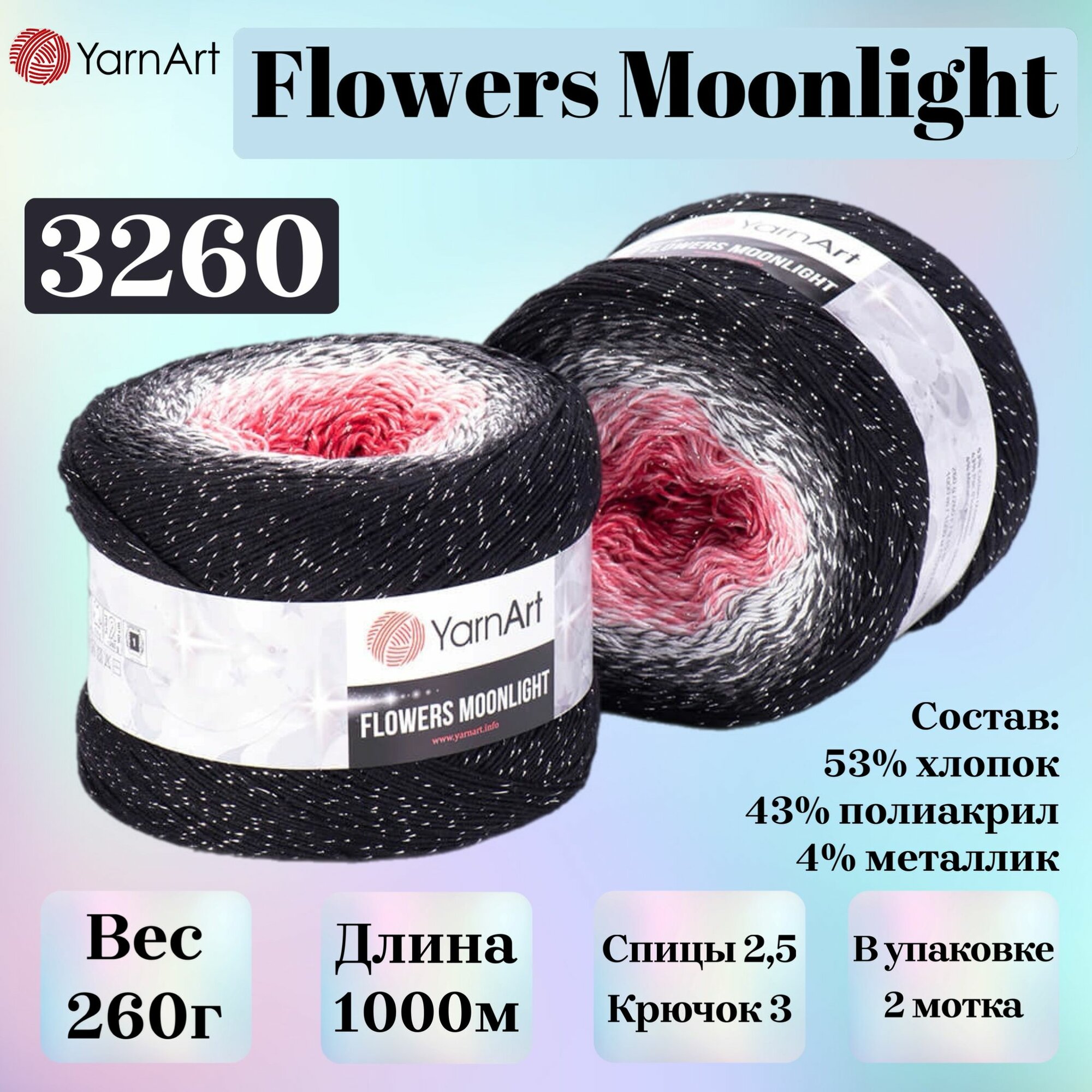 Купить Пряжа YarnArt Flowers Moonlight черный-белый-коралл (3260), 53%хлопок/43%акрил/4%металлик, 1000м, 260г, 1шт