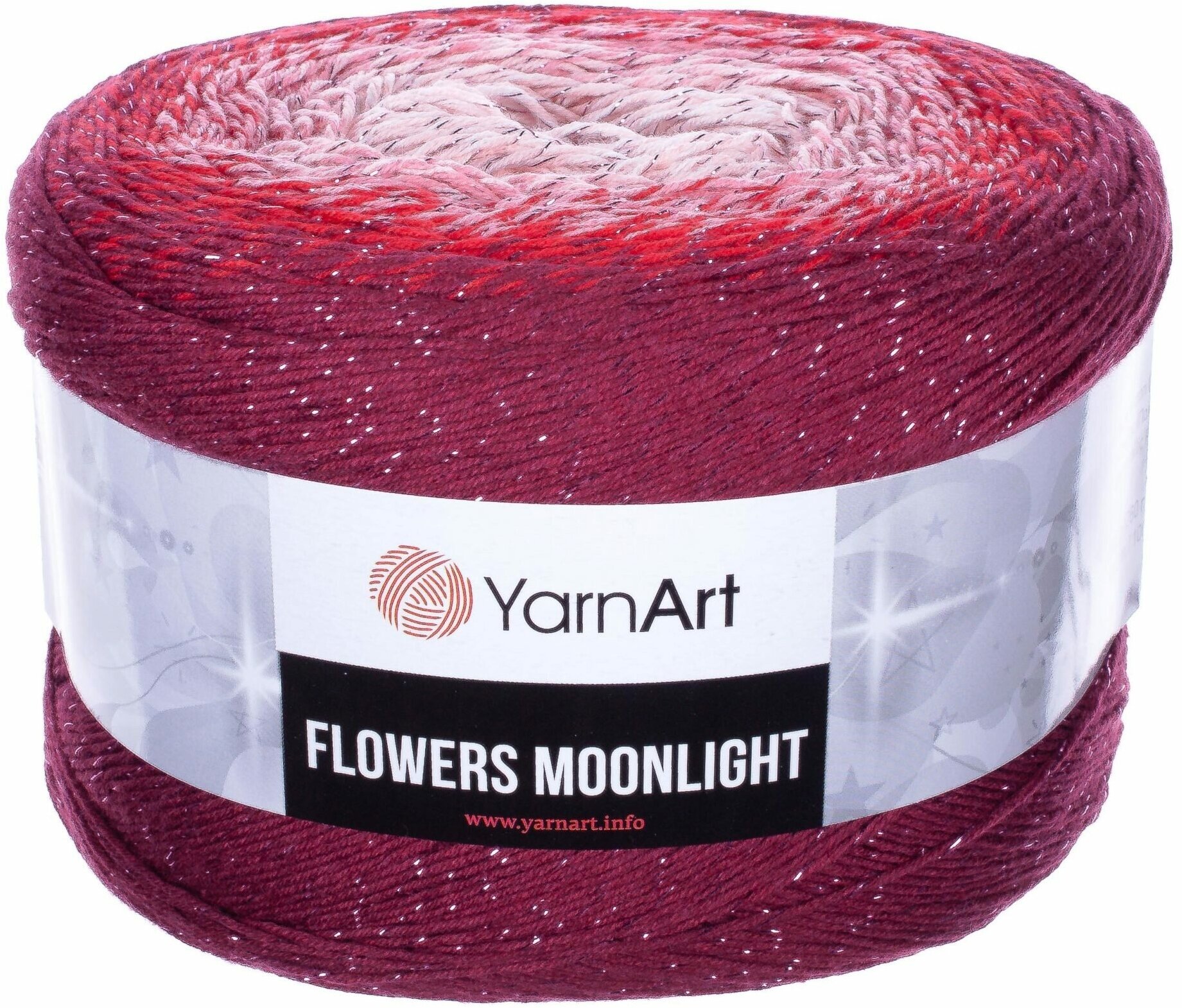 Пряжа YarnArt Flowers Moonlight бордовый-красный-св.розовый (3269), 53%хлопок/43%акрил/4%металлик, 1000м, 260г, 1шт