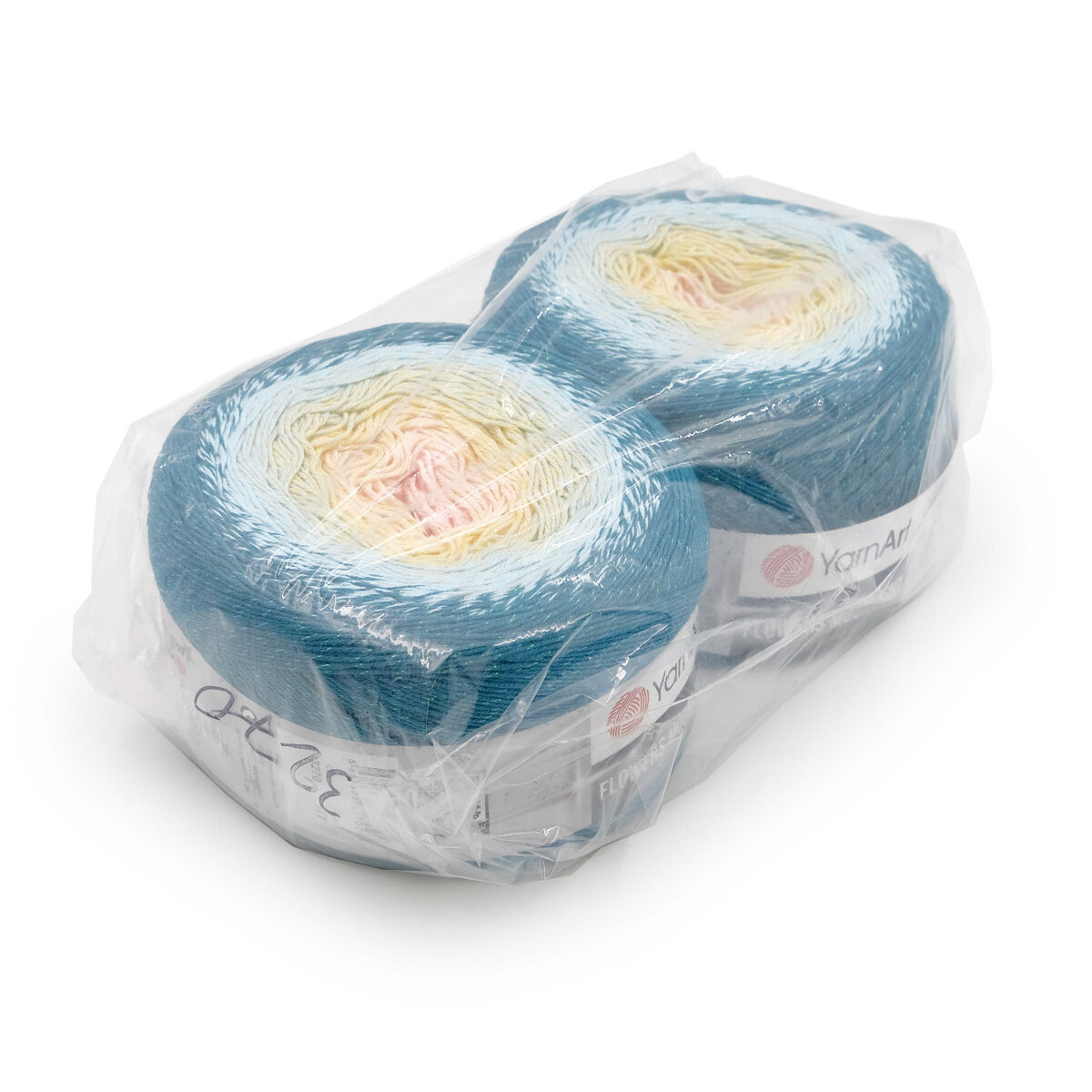 Пряжа YarnArt Flowers Moonlight бирюза-белый-розовый-цикламен (3294), 53%хлопок/43%акрил/4%металлик, 1000м, 260г, 2шт