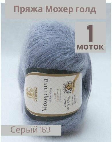 Пряжа Мохер Голд от Камтекс. Цвет серый 169. 1 шт*50г/250 м
