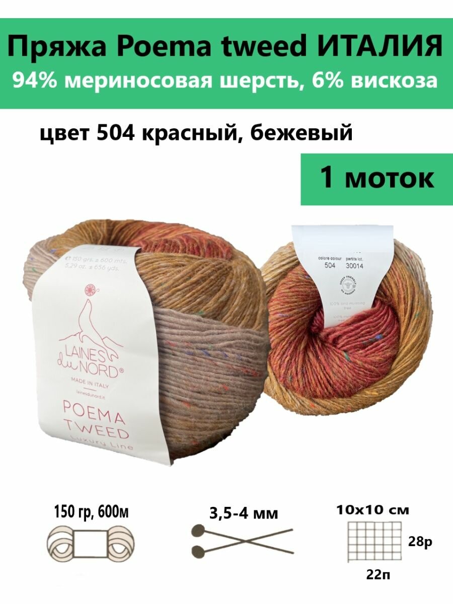 Купить Пряжа для вязания POEMA TWEED / Laines du Nord цвет 504 красный-бежевый/ 150 гр / 600м