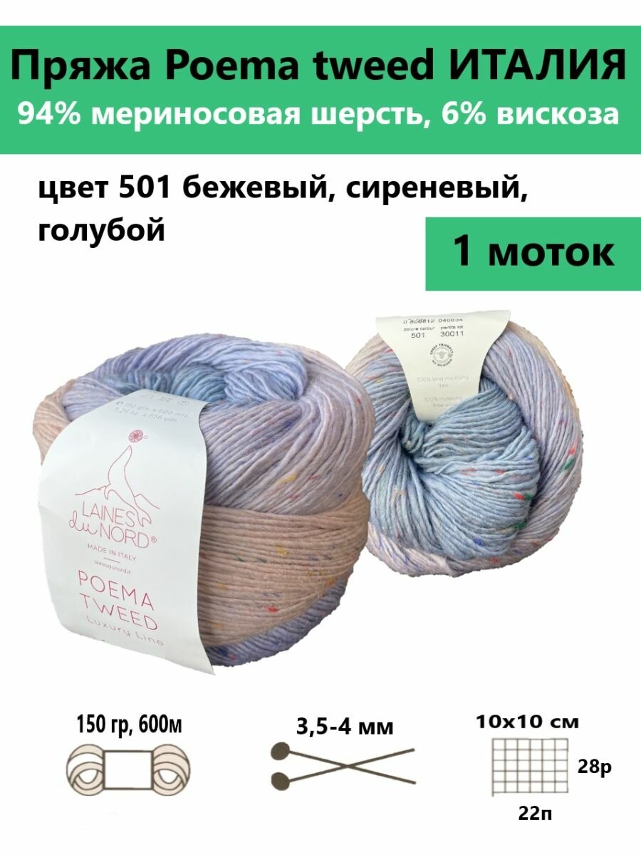 Купить Пряжа для вязания POEMA TWEED / Laines du Nord цвет 501 бежевый-сиреневый-голубой/ 150 гр / 600м