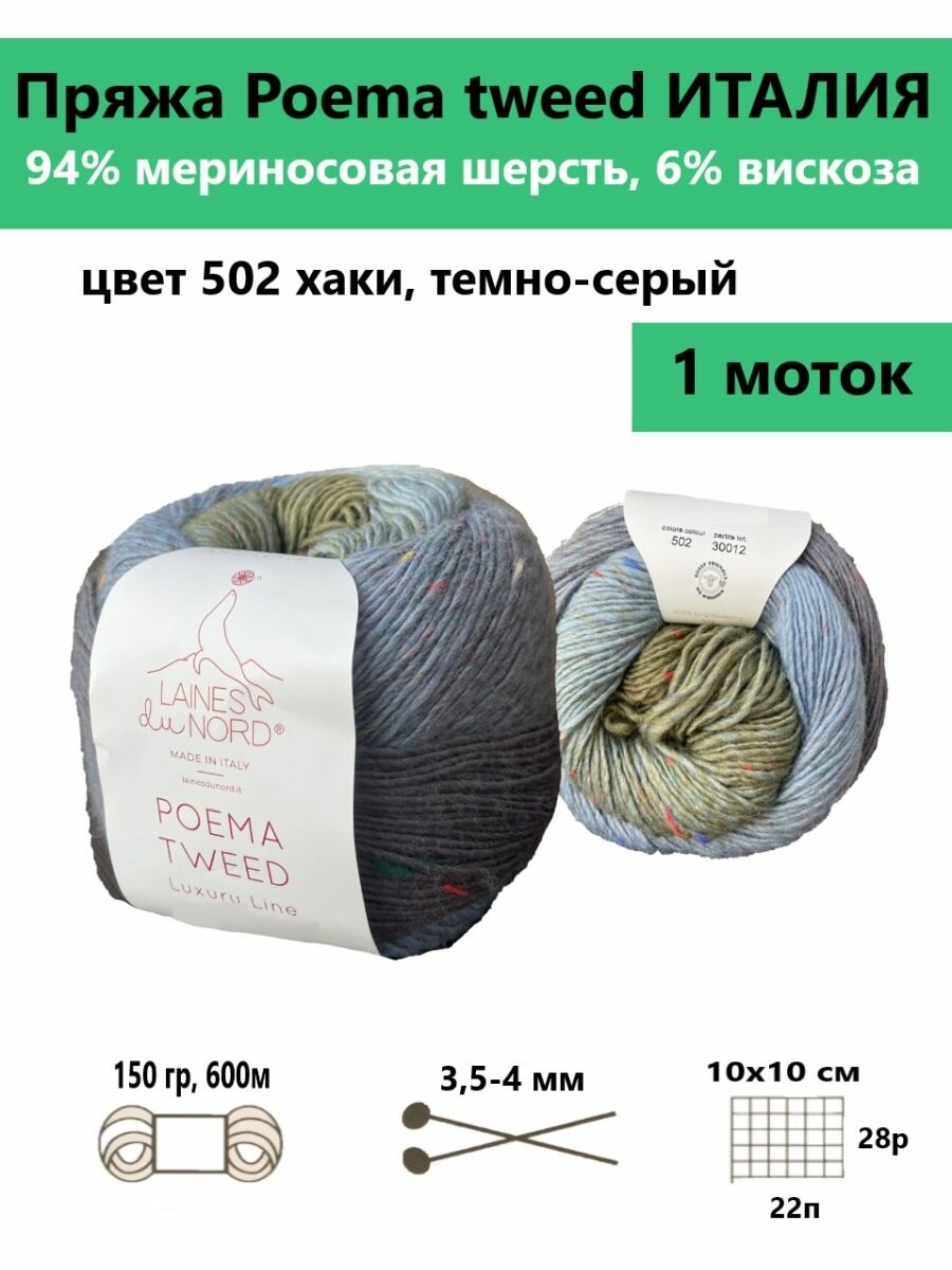 Пряжа для вязания POEMA TWEED / Laines du Nord цвет 502 хаки-т. серый/ 150 гр / 600м