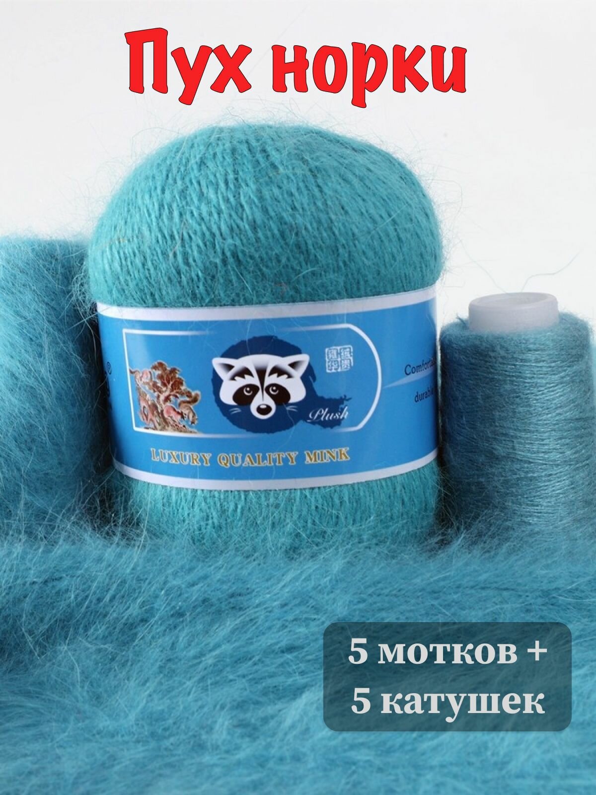 Купить Пряжа Пух норки - 5 мотков 50гр/350м + 5 мотков добавочной нити, цвет 862 светло-бирюзовый , синяя этикетка