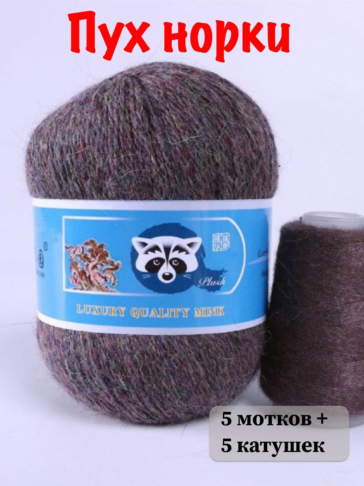 Пряжа Пух норки - 5 мотков 50гр/350м + 5 мотков добавочной нити, цвет 874 светло-коричневый , синяя этикетка