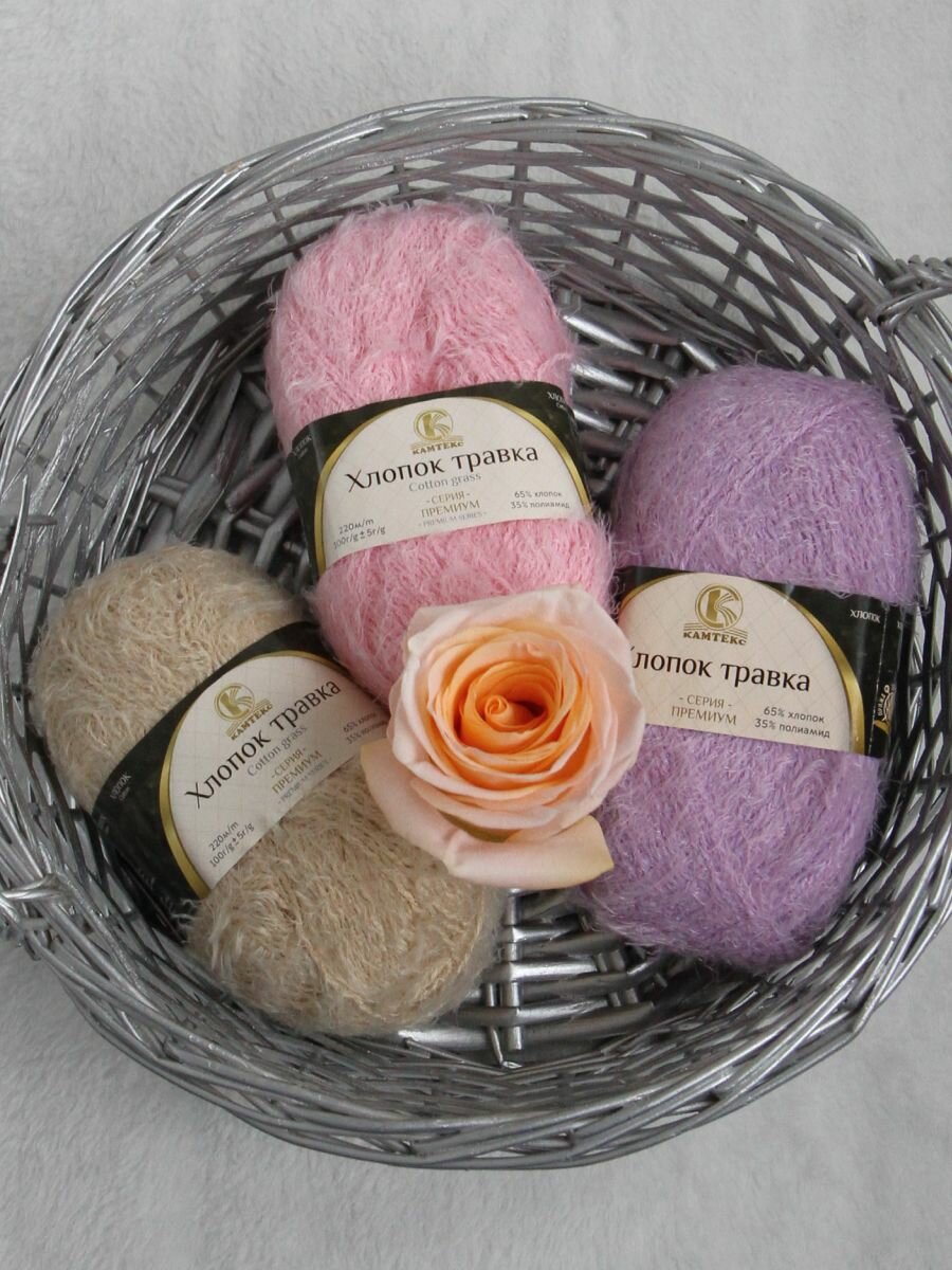 СохранитьПряжа Хлопок травка от Камтекс, цвет Ассорти 3.12.: бежевый1, светло рзовый, светло сиреневый 3 шт*100 г/220 м интересное: