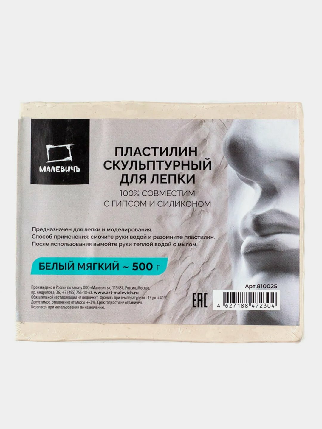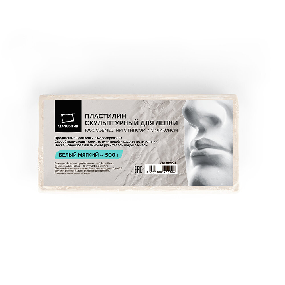 Купить Пластилин Малевичъ скульптурный Белый мягкий 500 г (810025)
