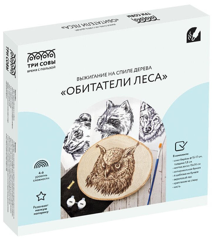 Набор для выжигания на спиле дерева ТРИ совы "Обитатели леса", диаметр 15см интересное: