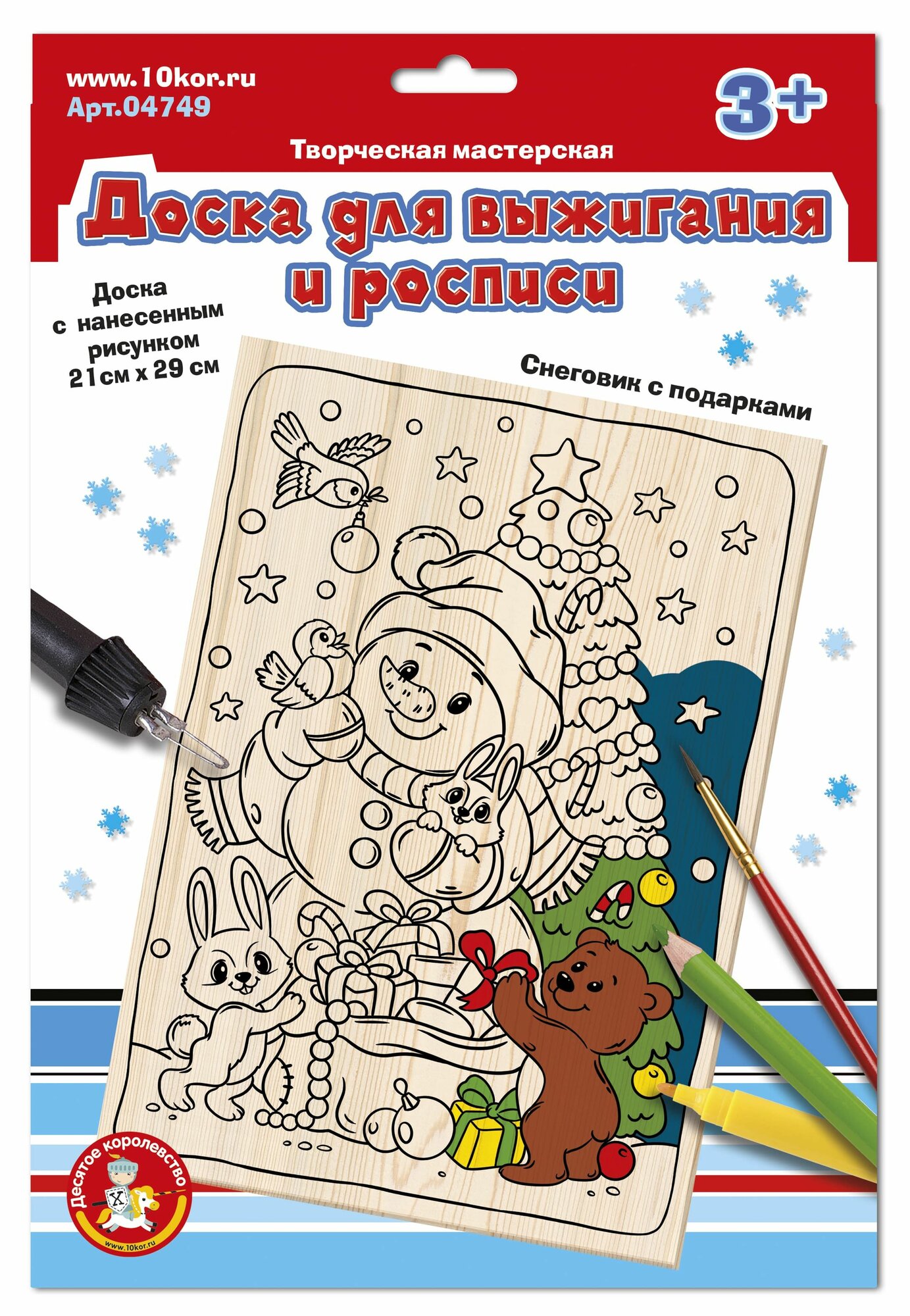 Десятое Королевство Выжигание. Доска для выжигания и росписи «Снеговик с подарком»