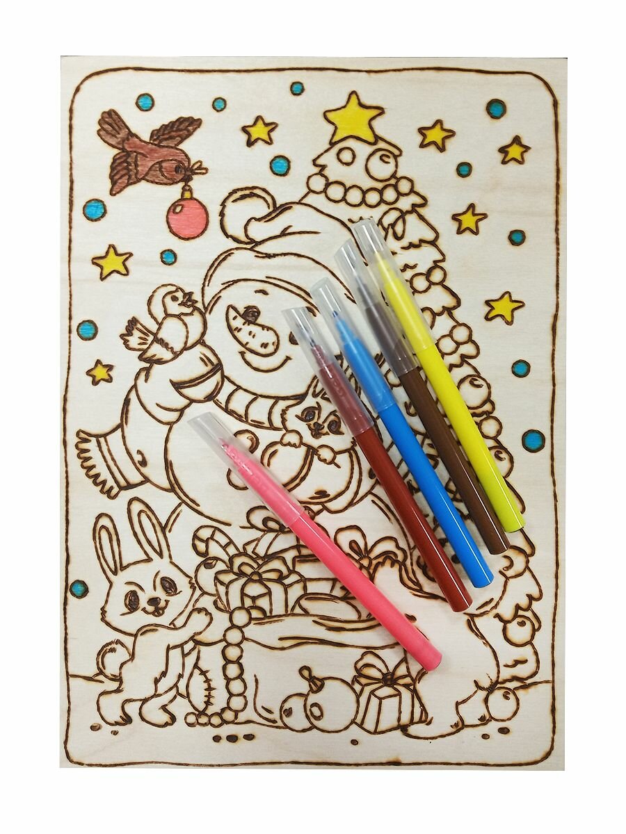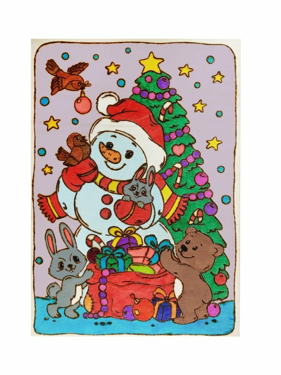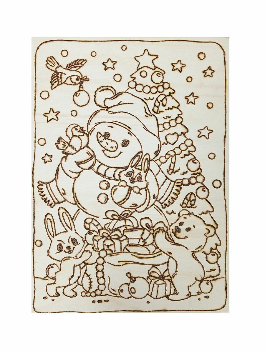 Доска для выжигания и росписи Снеговик с подарком