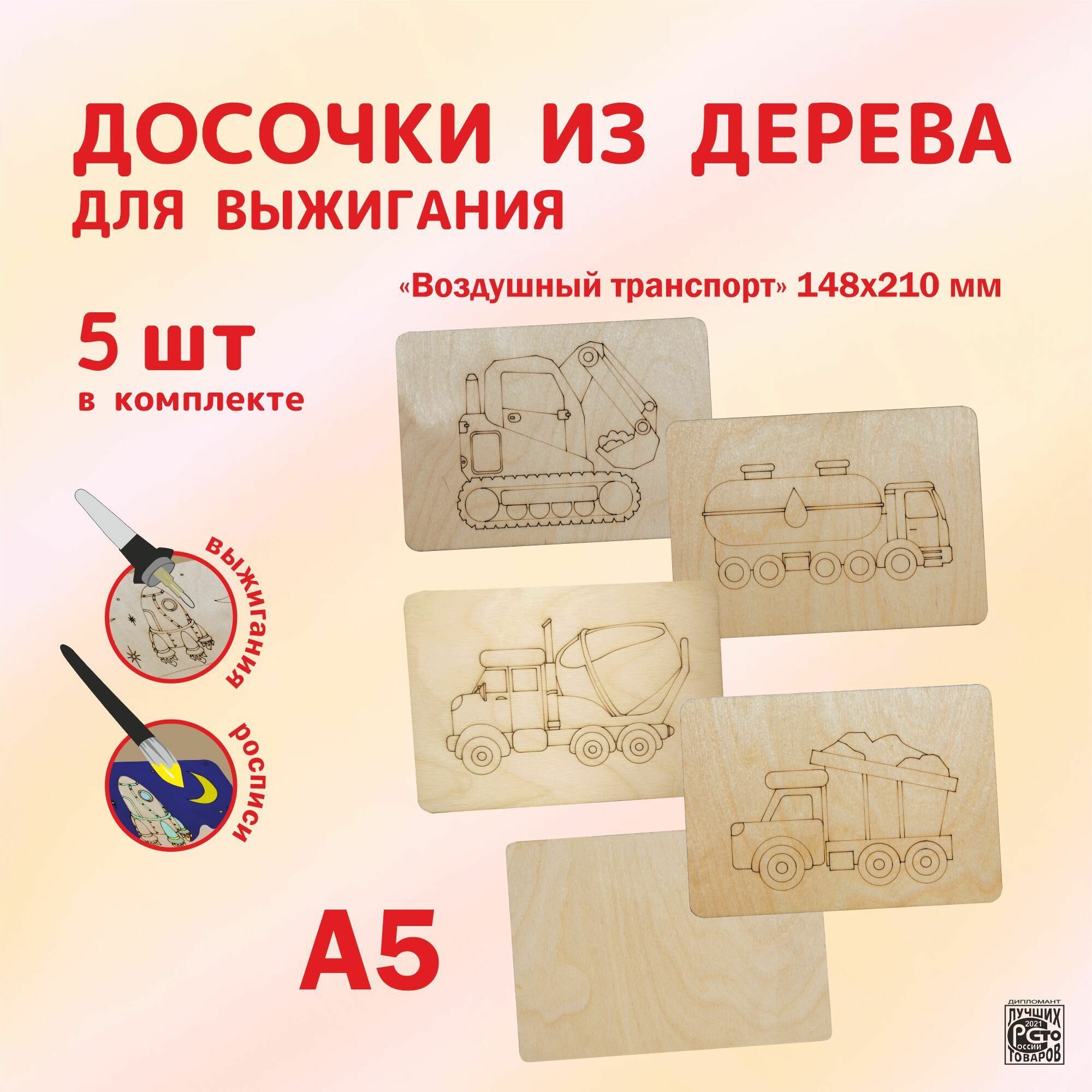 Купить Набор досок для выжигания и рисования по дереву с рисунком Грузовой транспорт А5 5 шт досочки для творчества детские