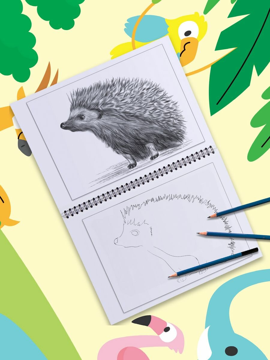 Раскраска с эскизами А4 антистресс обучение рисованию Животные интересное: