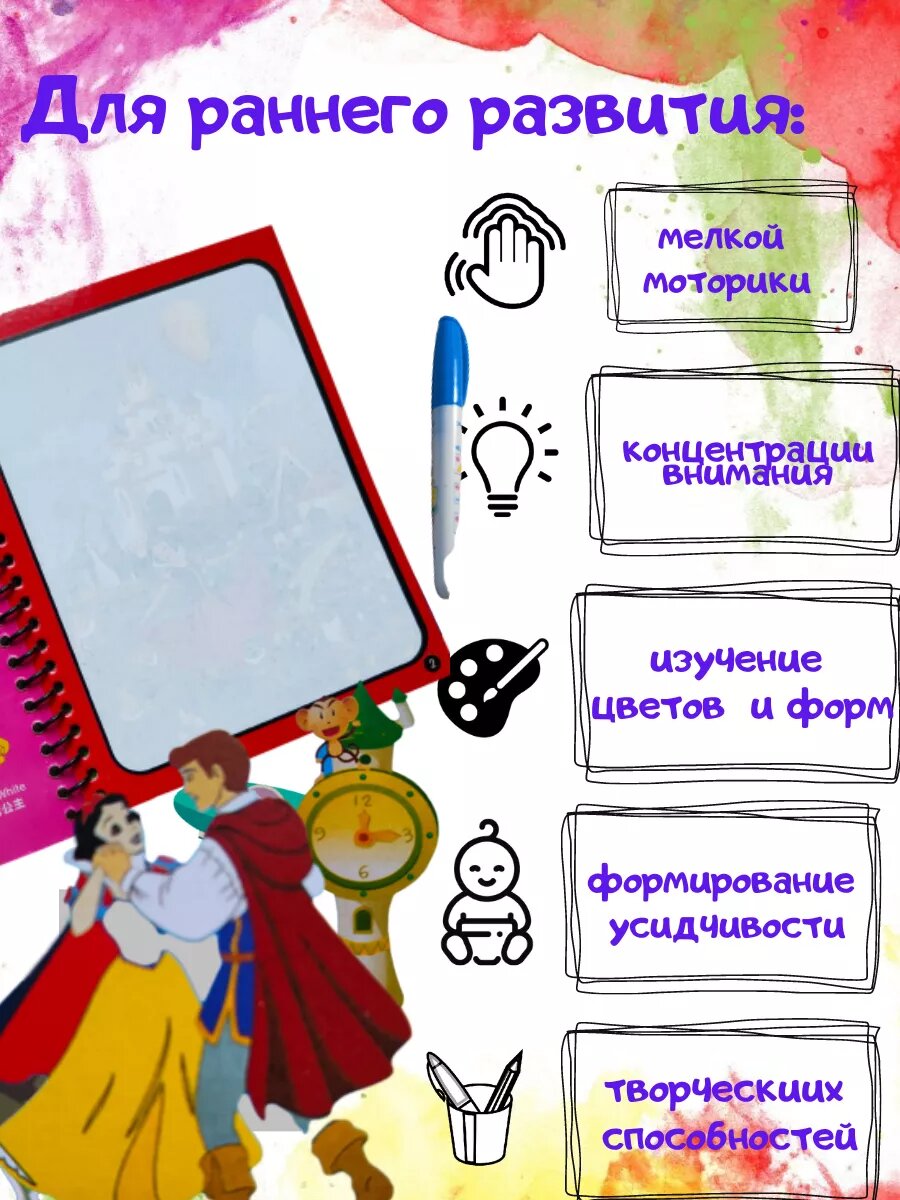 "Книга антистресс с водным маркером" - раскраска для детей от 2 до 14 лет