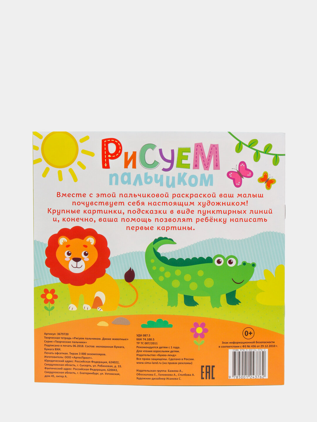 Раскраска «Рисуем пальчиками. Дикие животные», 16 стр. интересное: