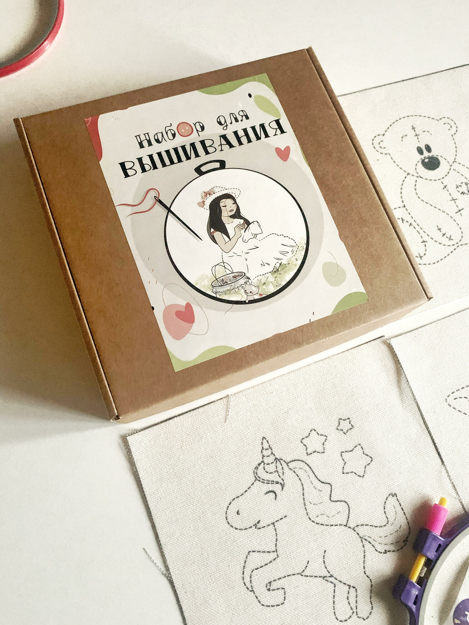 Детский набор для вышивания и творчества. Рукоделие. 5 рисунков для вышивки. Разные техники интересное: