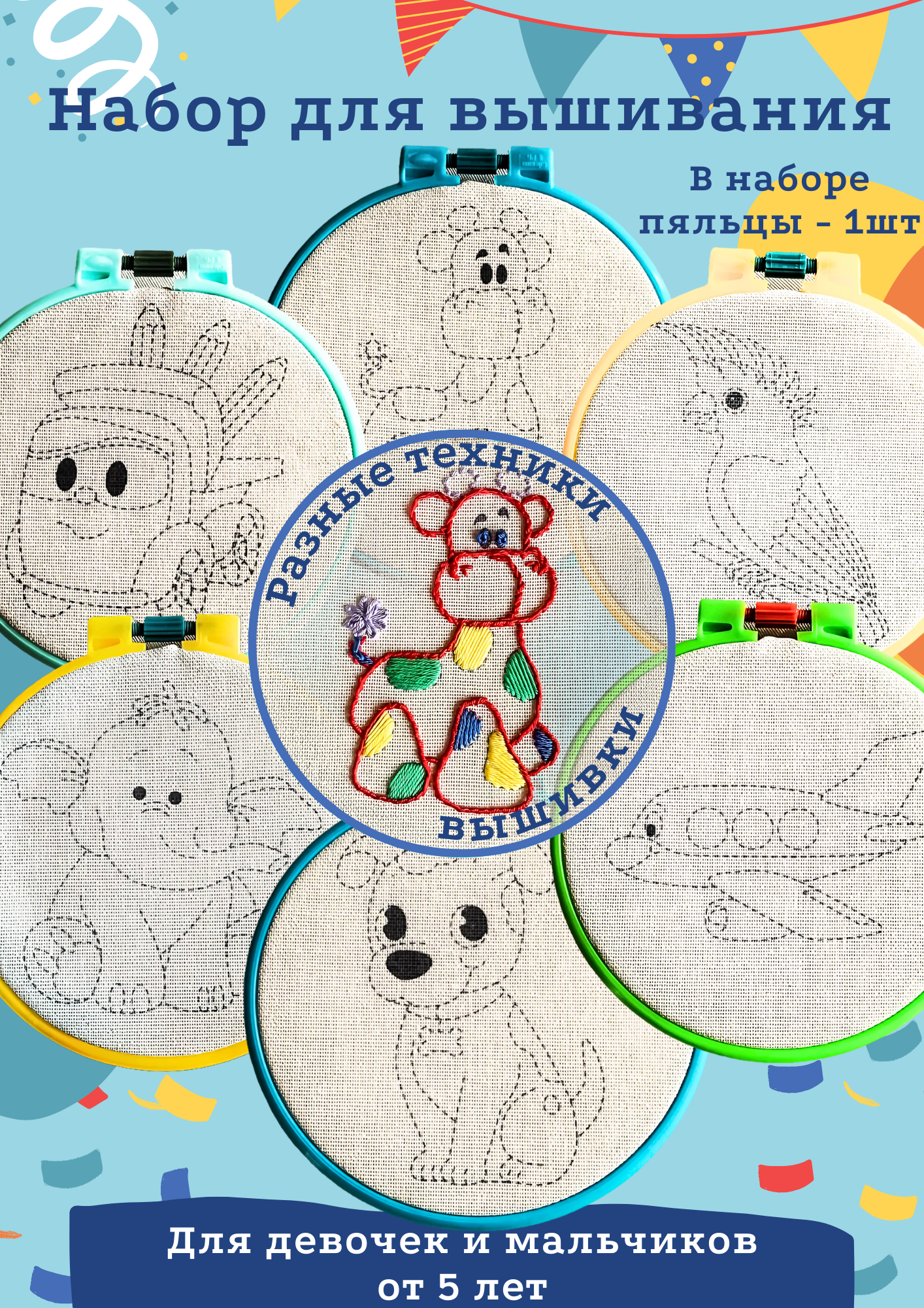 Купить Детский набор для вышивания и творчества. Рукоделие. 6 рисунков дл вышивки. Разные техники.