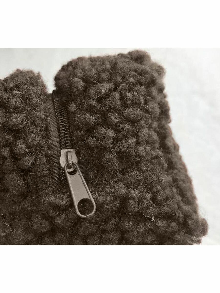 Пенал - косметичка плюшевый на молнии мягкий тканевый, цвет темно-коричневый интересное:
