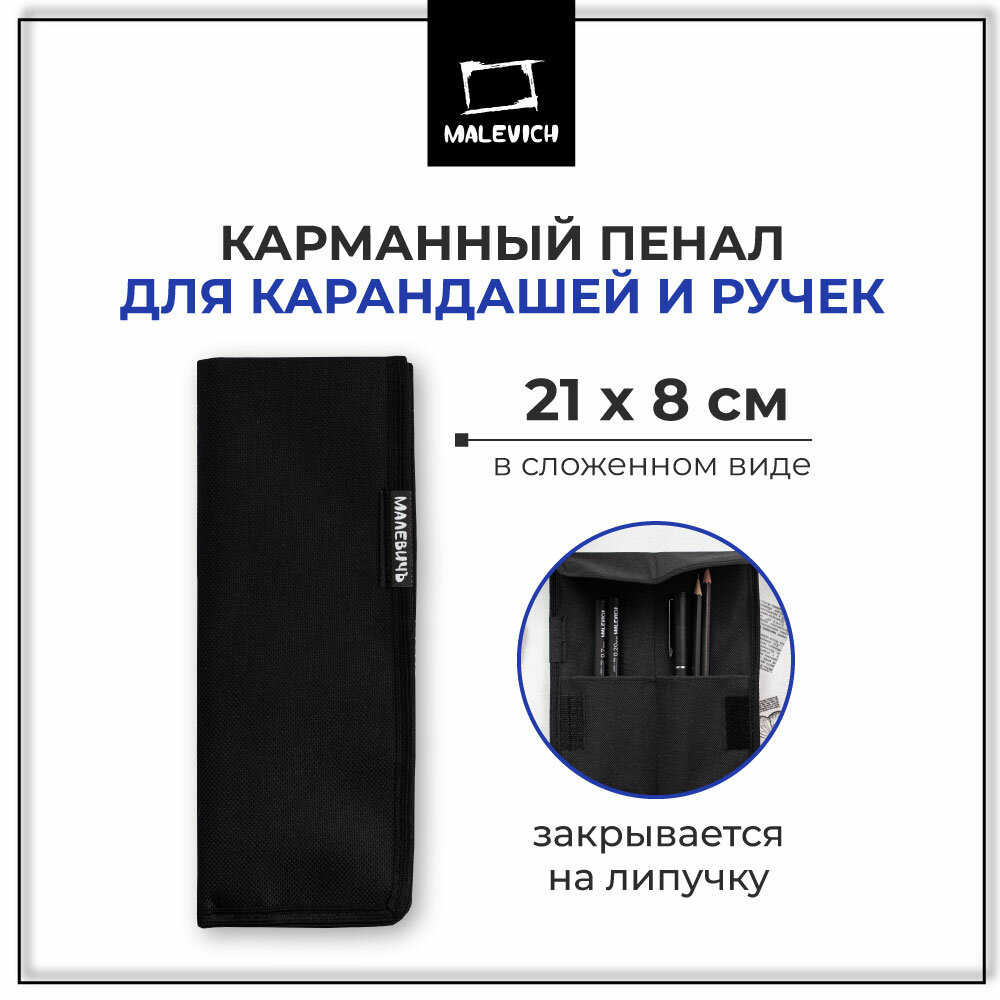 Пенал карманный для карандашей и ручек Малевичъ, цвет - черный интересное:
