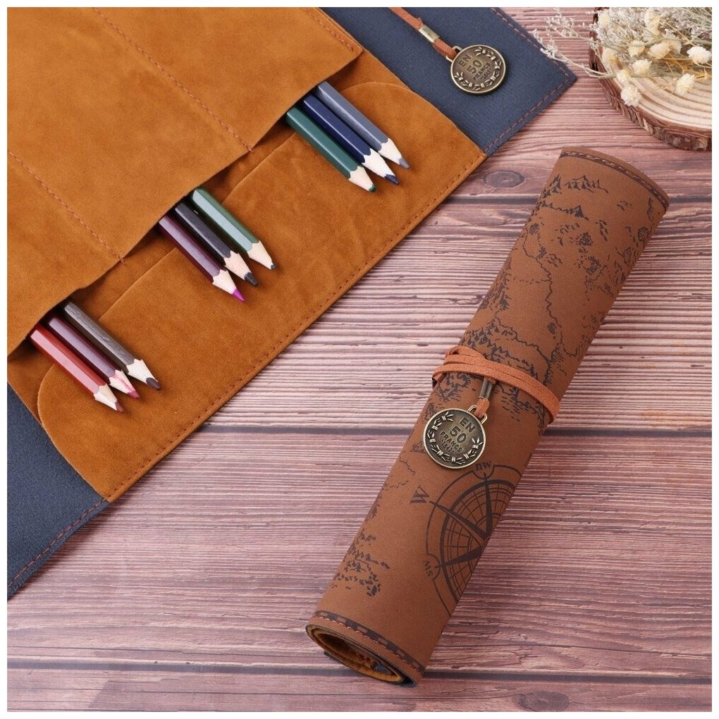 Кожаный чехол для хранения карандашей и ручек SoulArt, стиль ретро, темный интересное: