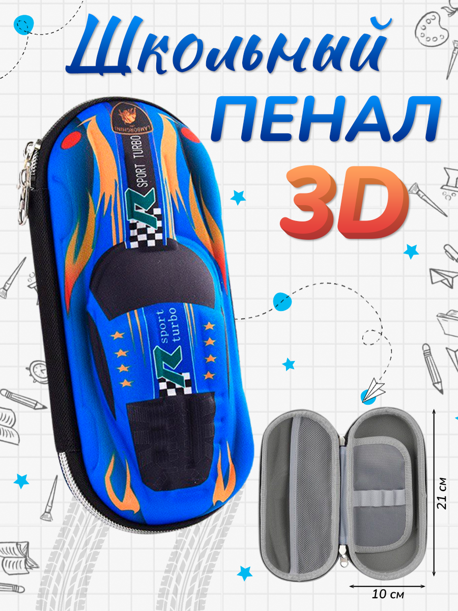 Школьный пенал для мальчика гоночная машинка синий интересное: