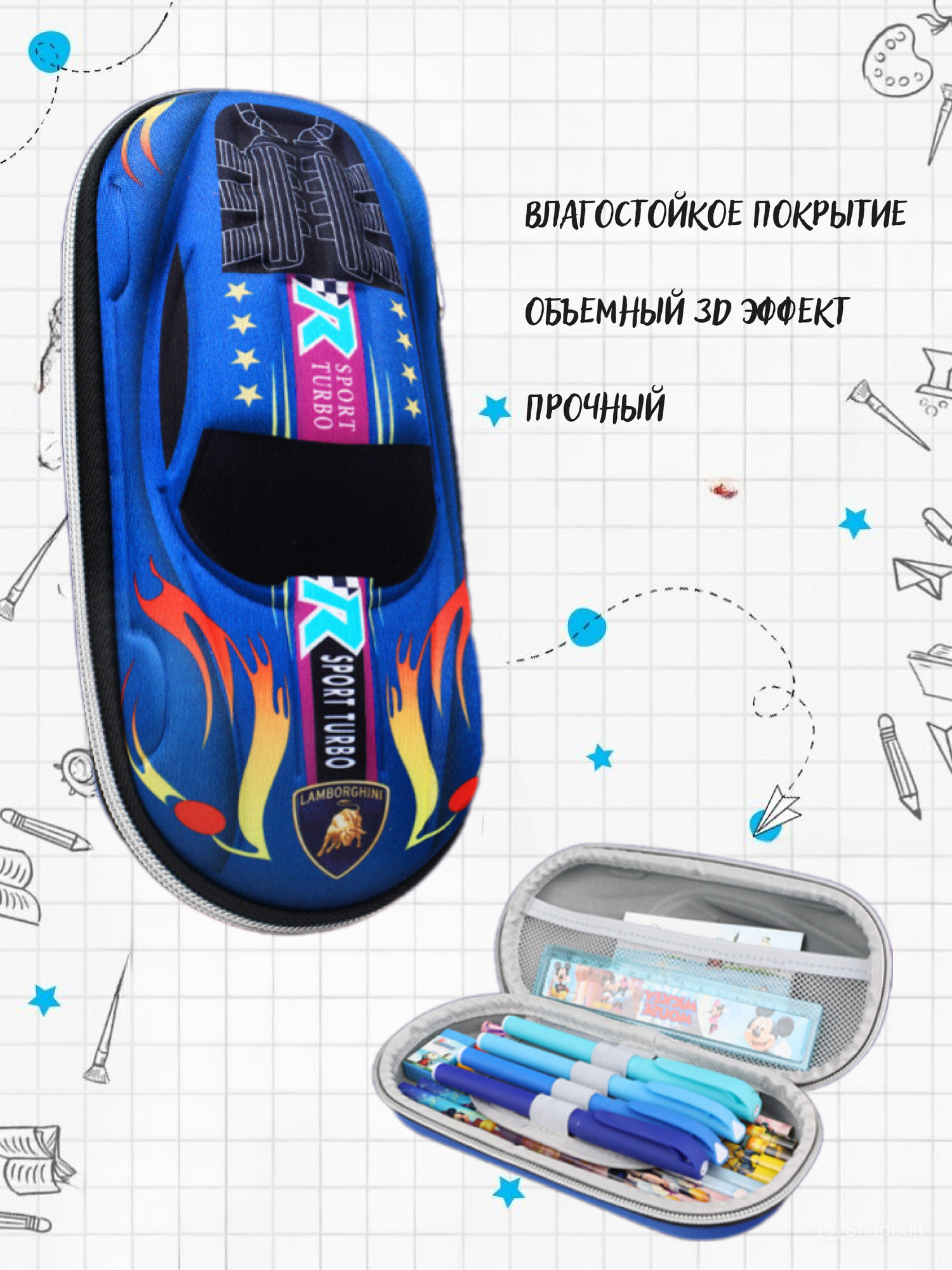 Ниже Вы можете прочитать отзывы на Школьный пенал для мальчика гоночная машинка синий, ознакомится с подробными характеристиками, посмотреть интересные обзоры и фотографии на Школьный пенал для мальчика гоночная машинка синий.