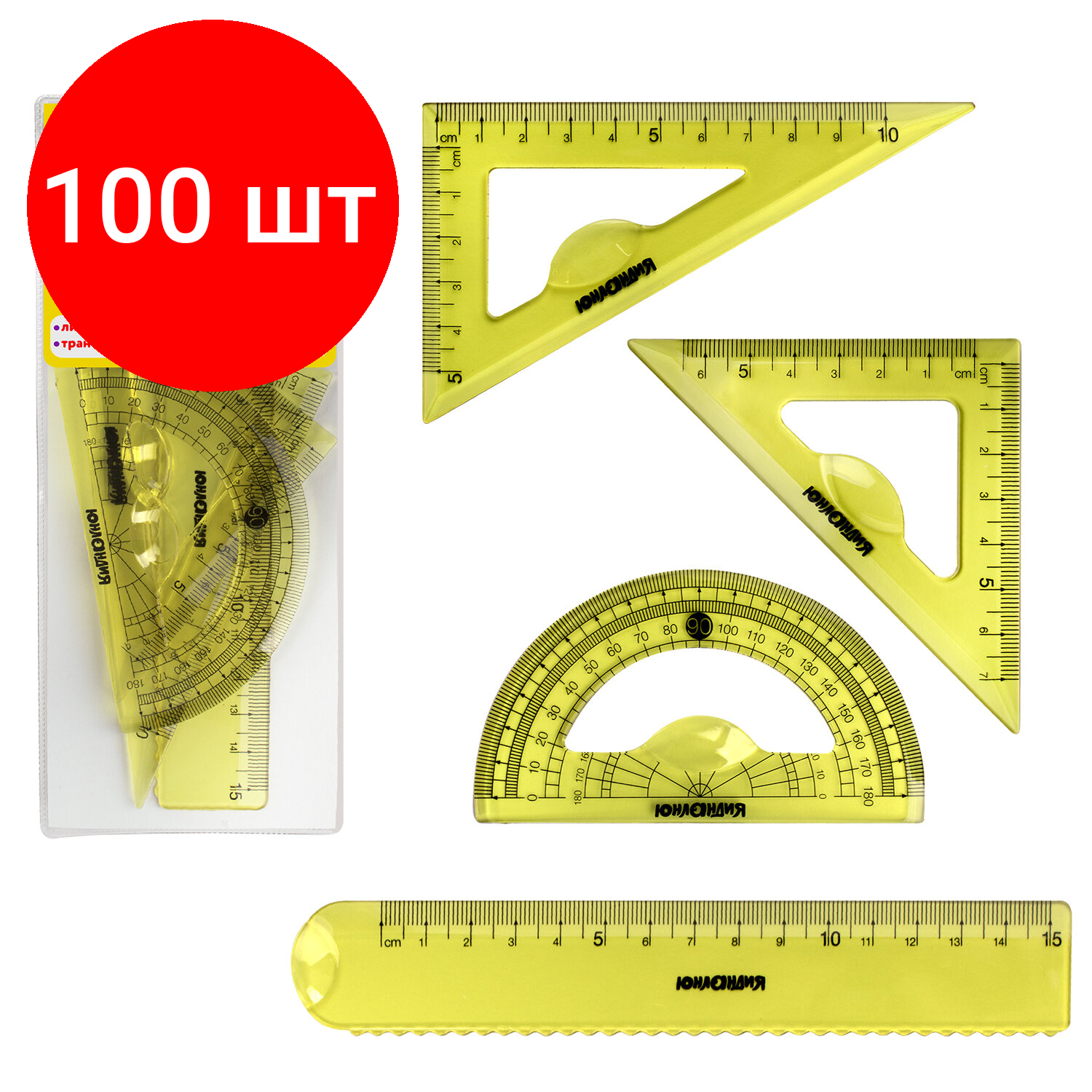 Набор чертежный для школы, геометрии малый Юнландия Start 3D, линейка 15 см, 2 треугольника, транспортир, прозрачный желтый, 210741 интересное: